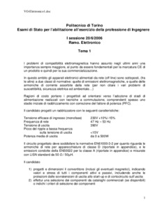 Tema d'esame di stato. Sezione A (vecchio ordinamento). Ramo elettronica. Prima sessione