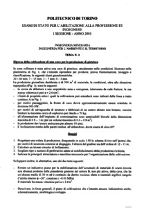 Tema d'esame di stato. Sezione A (vecchio ordinamento). Ramo ambiente/territorio. Prima sessione