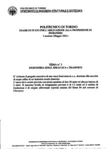 Tema d'esame di stato. Sezione A (vecchio ordinamento). Ramo idraulico. Prima sessione
