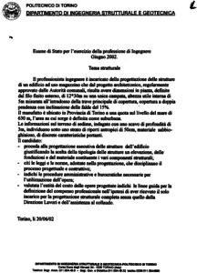 Tema d'esame di stato. Sezione A (vecchio ordinamento). Ramo trasporti. Prima sessione