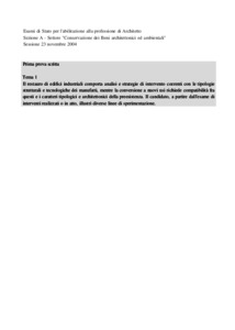 Tema d'esame di stato. Sezione A (nuovo ordinamento). Settore conservazione dei beni. Seconda sessione