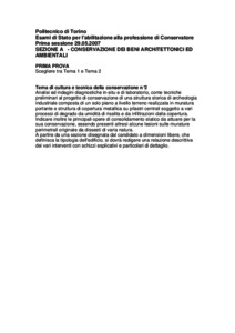 Tema d'esame di stato. Sezione A (nuovo ordinamento). Settore conservazione dei beni. Prima sessione