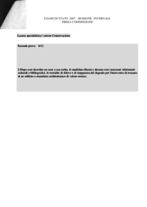 Tema d'esame di stato. Sezione A (nuovo ordinamento). Settore conservazione dei beni. Seconda sessione