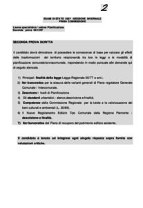 Tema d'esame di stato. Sezione A (nuovo ordinamento). Settore pianificazione. Seconda sessione