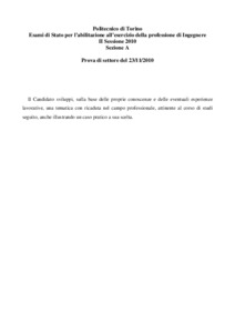 Tema d'esame di stato. Sezione A (nuovo ordinamento). Settore industriale. Seconda sessione