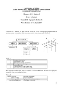 Tema d'esame di stato. Sezione A (nuovo ordinamento). Settore industriale. Prima sessione