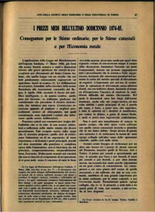 I prezzi medi dell'ultimo dodicennio 1874-85. Conseguenze per le Stime ordinarie, per le Stime catastali e per l'Economia rurale - Memoria del socio Ing. Giulio Fettarappa