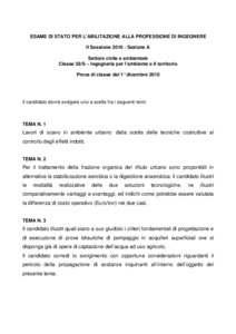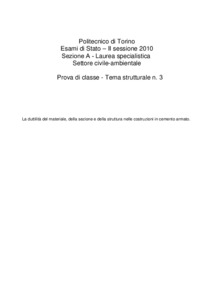 Tema d'esame di stato. Sezione A (nuovo ordinamento). Settore civile e ambientale. Seconda sessione