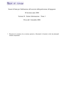 Tema d'esame di stato. Sezione B (laurea triennale e diplomi). Settore dell'informazione. Seconda sessione