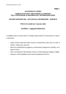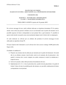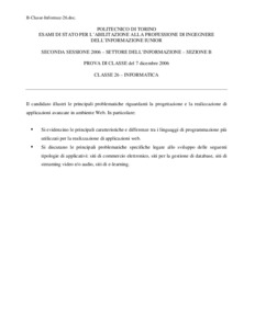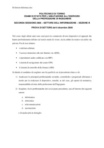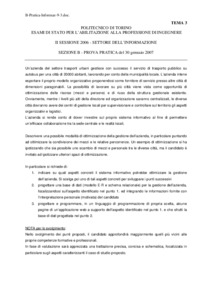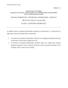 Tema d'esame di stato. Sezione B (laurea triennale e diplomi). Settore dell'informazione. Seconda sessione