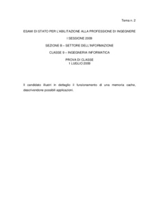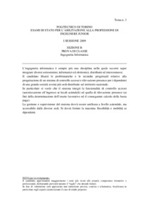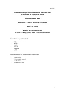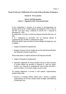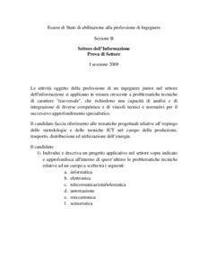 Tema d'esame di stato. Sezione B (laurea triennale e diplomi). Settore dell'informazione. Prima sessione