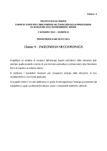 Tema d'esame di stato. Sezione B (laurea triennale e diplomi). Settore dell'informazione. Prima sessione