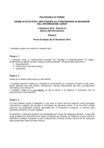 Tema d'esame di stato. Sezione B (laurea triennale e diplomi). Settore dell'informazione. Seconda sessione