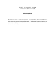 Tema d'esame di stato. Sezione B (laurea triennale e diplomi). Settore industriale. Prima sessione