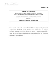 Tema d'esame di stato. Sezione B (laurea triennale e diplomi). Settore industriale. Seconda sessione