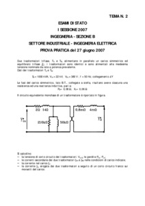 Tema d'esame di stato. Sezione B (laurea triennale e diplomi). Settore industriale. Prima sessione