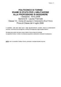 Tema d'esame di stato. Sezione B (laurea triennale e diplomi). Settore industriale. Prima sessione