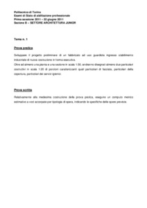 Tema d'esame di stato. Sezione B (laurea triennale e diplomi). Settore architettura. Prima sessione