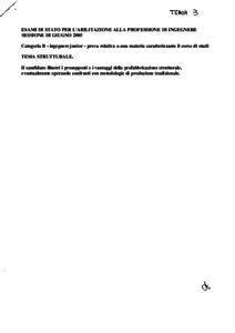 Tema d'esame di stato. Sezione B (laurea triennale e diplomi). Settore civile e ambientale. Prima sessione