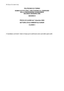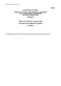 Tema d'esame di stato. Sezione B (laurea triennale e diplomi). Settore civile e ambientale. Seconda sessione