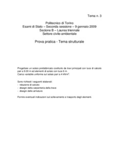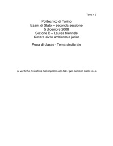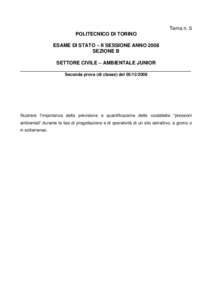 Tema d'esame di stato. Sezione B (laurea triennale e diplomi). Settore civile e ambientale. Seconda sessione