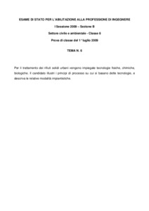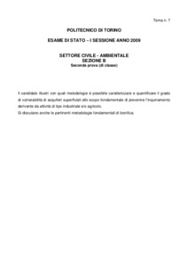 Tema d'esame di stato. Sezione B (laurea triennale e diplomi). Settore civile e ambientale. Prima sessione