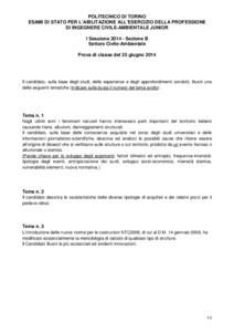 Tema d'esame di stato. Sezione B (laurea triennale e diplomi). Settore civile e ambientale. Prima sessione.