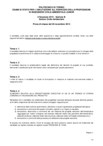 Tema d'esame di stato. Sezione B (laurea triennale e diplomi). Settore Civile ambientale junior. Seconda sessione
