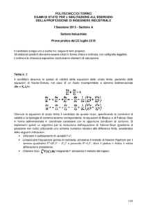 Tema d'esame di stato. Sezione A (nuovo ordinamento). Settore Industriale. Prima sessione
