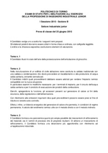 Tema d'esame di stato. Sezione B (laurea triennale e diplomi). Settore Industriale. Prima sessione
