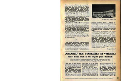 Concorso per l'opspedale di Vercelli. Rilievi tecnici tratti da tre progetti primi classificati