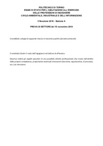 Tema d'esame di stato. Sezione A (nuovo ordinamento). Settore Civile e Ambientale. Seconda sessione 2018
